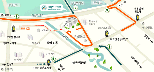 (8호선 4번출구)에서 내려서 대중교통을 이용 |