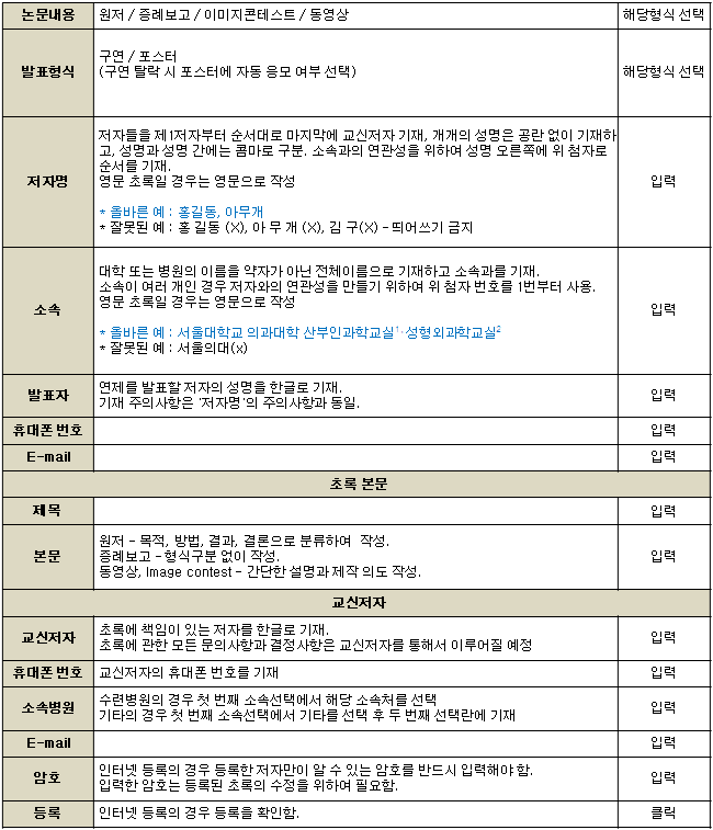 ④ 응모건수에는 제한이 없으나 응모된 모든 자료는 20증례만 선택되어 학술대회에서 발표될 예정입니다. (20례 초과분에 대해서는 포스터 발표장에서 beam projector로 상영)