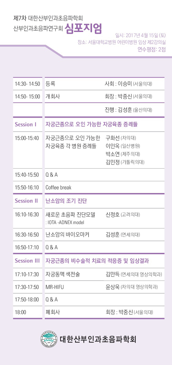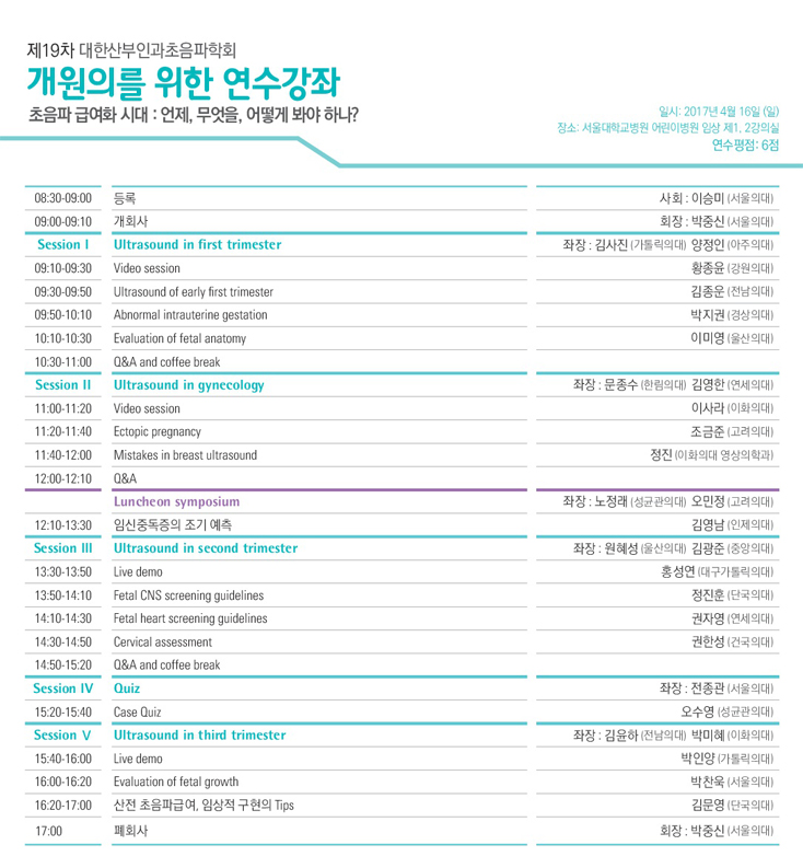 대한산부인과초음파학회 홈페이지 제 19차 대한산부인과초음파학회 개원의를 위한 연수강좌 대한산부인과초음파학회 홈페이지